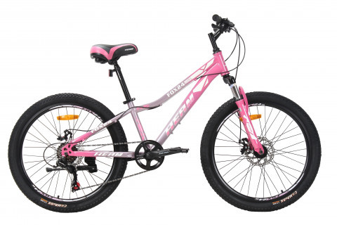Материал рамы сталь Тип тормозов дисковый механический Диаметр колес 24" Размеры 10.5" Цвета Серый/Розовый Вилка амортизационная Задний переключатель Shimano TZ-500 Передний переключатель - Манетки Microshift TS-38-6 Шатуны (Система) сталь Задние звезды ATA 6ск. Цепь KMC Каретка сталь картридж Тормоза disc механика JAK или YinXing ротор 160мм Покрышки Wanda 24" Втулки сталь Обода ALLOY двойной высокий Рулевая FP Вынос сталь регулируемый Руль steel Грипсы black Седло YBN Педали Plastic Подседельный штырь steel